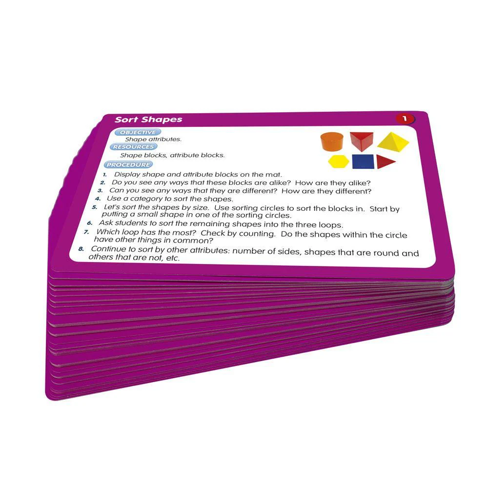 50 Activiteitenkaarten: Vormen is een set van 50 dubbelzijdige activiteitenkaarten om kennis en begrip van vormen te onderwijzen.