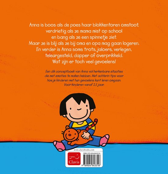 Anna’s Grote Emotieboek is een prachtig boek van Anna vol herkenbare situaties die met emoties te maken hebben. Anna is boos als de poes haar blokkentoren omstoot, verdrietig als ze mama mist op school en bang als ze een spinnetje ziet. Maar ze is blij als ze bij oma en opa mag gaan logeren. En verder is Anna soms trots, jaloers, verlegen, teleurgesteld, dapper of overprikkeld. Wat zijn er toch veel gevoelens!