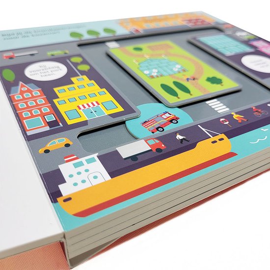 In het dikke kartonboek Een Rondje Met De Brandweerwagen maak je eerst kennis met voertuigen van verschillende hulpdiensten die je zomaar tegen kunt komen op de weg. Daarna kun je het zelf een rondje laten rijden of vliegen! Met je vinger kun je de brandweerwagen, politieauto, ambulance en de reddingshelikopter door de stad of de lucht sturen.