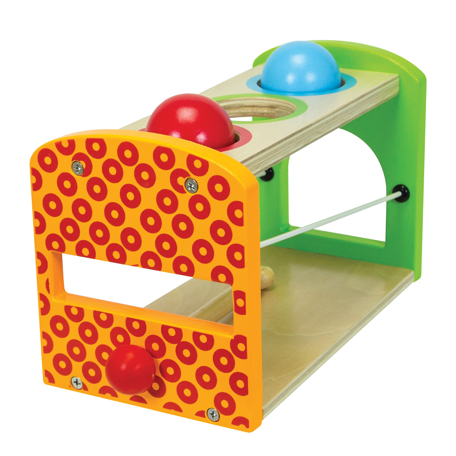 Met de Eichhorn houten hamerbank met xylofoon heb je 3 activiteiten in 1. Hamer de ballen door de openingen en zie hoe ze naar beneden vallen en rollen over de ballenbaan. Ben je uitgespeeld? Draai dan het plankje van de ballenbaan om en je hebt een xylofoon waarmee je de mooiste klanken laat horen.