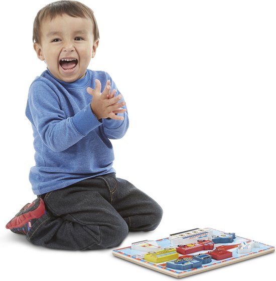 Houten Blokpuzzel Voertuigen met 9 puzzelstukken in de vorm van voertuigen. Omdat de voorbeelden in de puzzel overeenkomen met de puzzelstukjes kun je ook goed oefenen in de match vaardigheden! De puzzelstukken zijn lekker stevig en steken wat uit de puzzel. Zo kun je ze lekker gemakkelijk beetpakken.