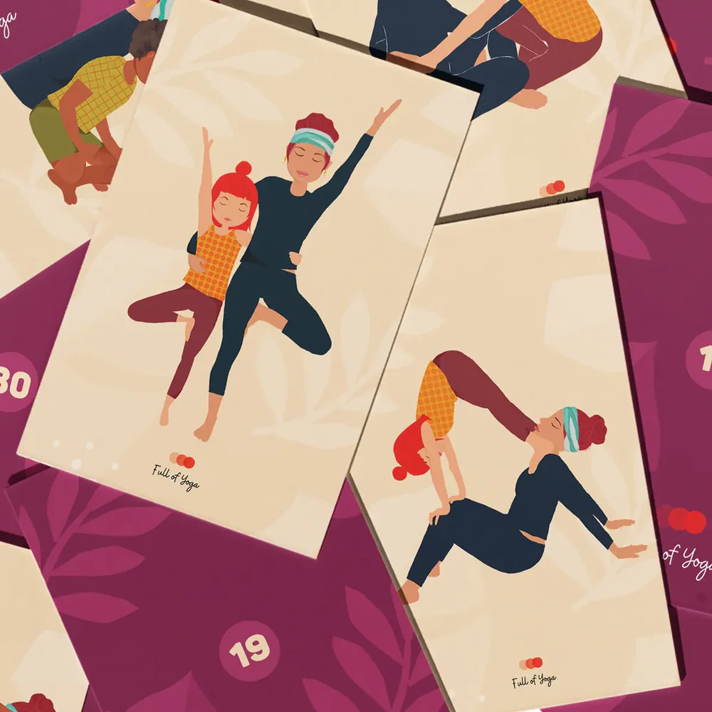 Via de Kaartenset Familie Yoga samen verbinden via speelse duo-oefeningen, voor jong en oud.