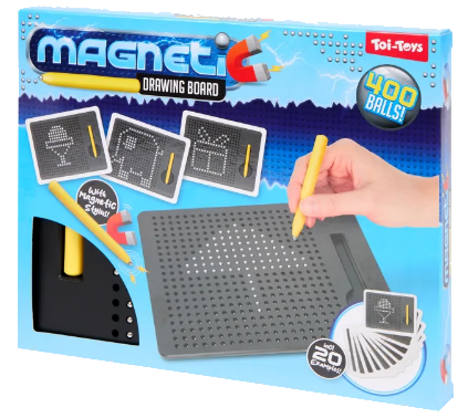 Gaaf magnetisch tekenbord om de mooiste creaties te maken. De set bevat maar liefst 400 balletjes en een magnetische pen. Door de pen boven een gaatje te houden komt het balletje naar boven. Met de achterzijde van de pen of je vinger kun je de balletjes weer terug duwen. De set bevat ook nog eens 20 voorbeeldkaarten met afbeeldingen om te maken zoals een ijsco, olifant of cadeau. Maar je kunt ook zelf bijvoorbeeld cijfers en letters gaan maken.