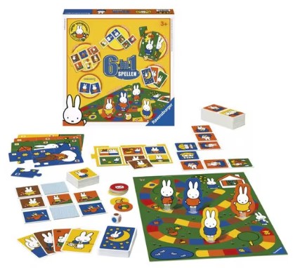 Met de Nijntje 6-in-1 Spellendoos van Dick Bruna’s Nijntje kun je maar liefst zes verschillende klassiekers spelen: memory, domino, lotto, kwartet, dobbelsteenpuzzel en een wedstrijdspel.