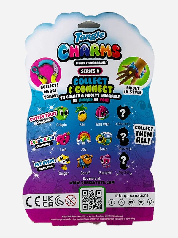 Elke Tangle Charms-set bevat een verrassingscharme – een Mystery Charm die jouw unieke look compleet maakt. Koppel je Tangle aan andere collecties, wissel de charmes en combineer verschillende kleuren en stijlen om een unieke creatie te maken. Dankzij het innovatieve ontwerp kun je je Tangle als sieraad dragen, delen en ruilen met vrienden voor eindeloze combinaties. Welke Mystery Charm krijg jij? Verzamel ze allemaal en ontdek het!