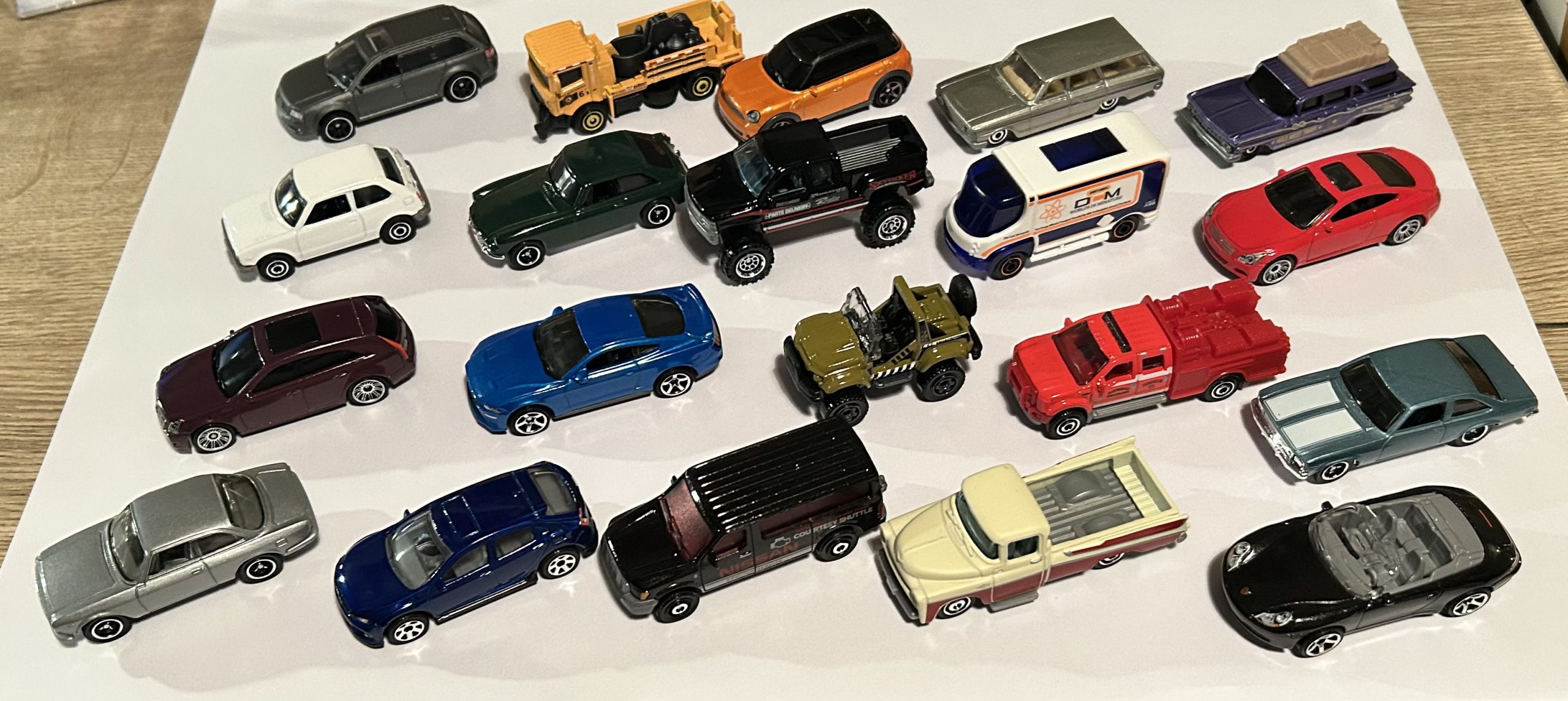 Mooie Voertuigenset Matchbox met 20 metalen voertuigen. De voertuigen in de set zijn op schaal van 1:64 in verschillende kleuren en modellen.