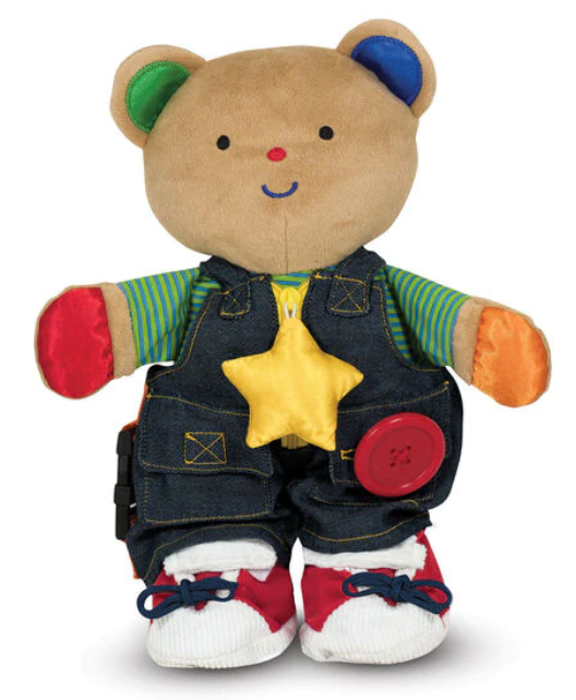 Deze gave aankleed beer leert kinderen hoe ze zichzelf van top tot teen moeten aankleden. De beer wordt geleverd in een uitneembare outfit boordevol sluitingen – perfect om het groeiende probleemoplossende vermogen en de motorische vaardigheden te testen.