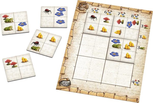 In het pakket zitten 25 dubbelzijdige puzzelkaarten, 7 ingrediënten tegels, de spelregels en 1 bijlage met tips en oplossingen.