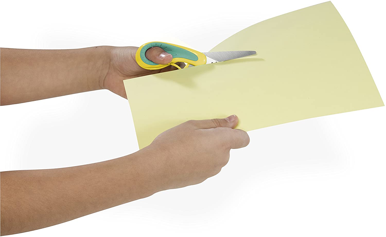 Ergonomische kinderschaar voor linkshandigen met zachte handgrepen voor een goede grip.
