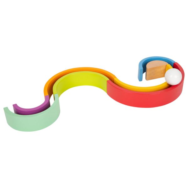Creëer de mooiste bouwwerken met de houten vormen en laat het balletje door, over en op de bouwwerken rollen. Spelenderwijs wordt zo het inzicht gebruikt en ben je ook bezig met oorzaak en gevolg. Wat gebeurt er precies als je het balletje op één van de vormen legt?