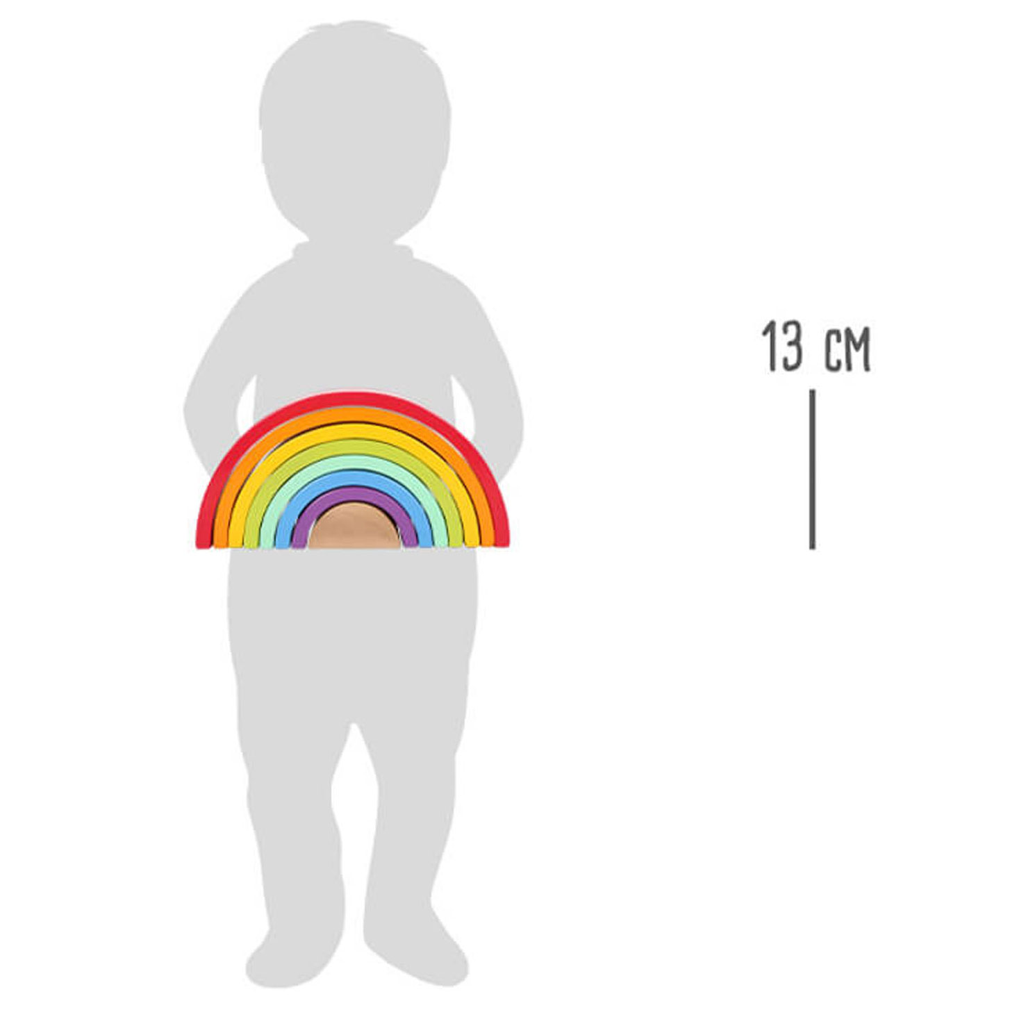 Met deze houten stapeltoren in de vorm van een regenboog kun je eindeloos spelen. De Houten Blokken Regenboog XL bestaat uit 8 kleurrijke halfronde vormen en een balletje.