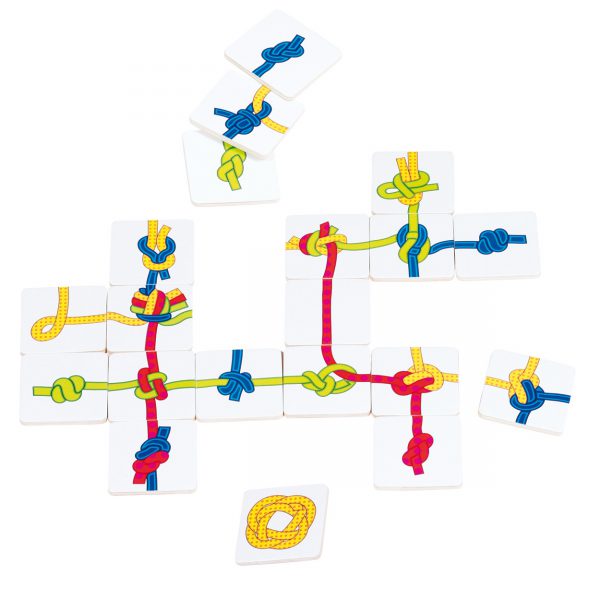 Maak door middel van de juiste knopen een zo lang mogelijk touw in jouw speelkleur en win het spel! In de set vind je 1 startkaart, 4 kleurkaarten, 48 spelkaarten, een katoenen zakje en een gebruiksaanwijzing.