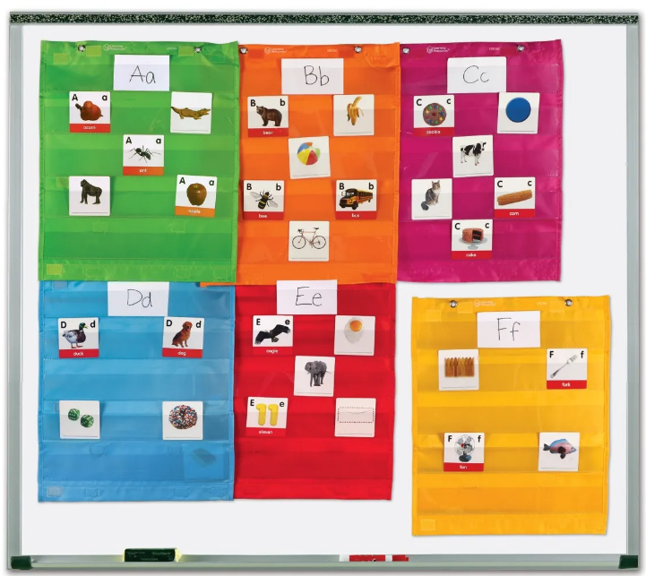 Handige Magnetische Hangtas (6 stuks) voor het organiseren van het klaslokaal of de les-, therapie of instructieruimte. Gebruik deze Magnetische Hangtas (6 stuks) alleen of voeg ze samen om één grote wand te vormen. Elke opbergtas heeft vijf rijen doorzichtige stroken waar afbeeldingen, foto’s, picto’s, etc in kunnen worden gestoken. Je kunt ze onderling verbinden met klittenband.