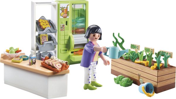 De Playmobil City Life Verkoopstand zit helemaal vol met allemaal lekkere gezonde voeding! Zodra de schoolbel klinkt, haast iedereen zich naar de verkoopstand. Welk heerlijk eten uit de schooltuin zal er vandaag beschikbaar zijn? Haal je drankjes bij de navulbare flesautomaat.