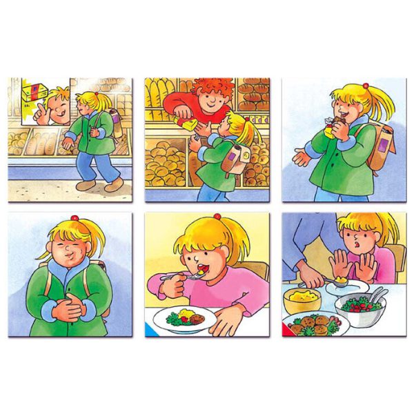 De verhalen zijn bijzonder geschikt als hulp voor de kinderen bij vrij spreken en vertellen voor de groep. Ze oefenen belangrijke basisfuncties in de taal zoals het begrijpen en het navoltrekken van het verloop van de handeling, het herkennen van het verloop in de tijd en het formuleren van waarnemingen en gevoelens. Schreeuwlelijk – Kerstmis – Hardlopen – Chocola – Poes – Gaan slapen – Televisie – Zwembad – Sneeuwballen – IJs – Verhuizen – Hond.