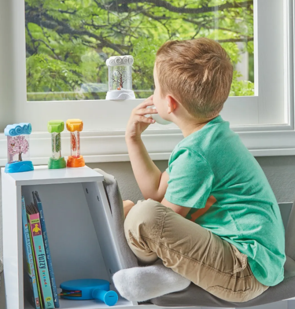 Deze set Sensorische Seizoenen heeft 4 buizen, elk met een boom die het seizoen moet voorstellen. De gemakkelijk vast te pakken buis heeft een kleurcode om het seizoen weer te geven. Als je de buis schud dan verschijnen er allemaal leuke natuurlijke elementen zoals planten, dieren, zon en sneeuw. Ook een handige Engelstalige handleiding is bijgesloten.