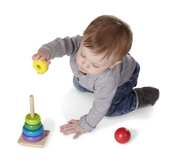 Stapel ze van groot naar klein en noem ze bij kleur, de zeven ringen van de Stapeltoren Regenboog. En sluit af met een mooie rode bal!. Een regenboog om te stapelen en in te steken! Deze stapeltoren schittert met felle regenboogkleuren en het houten materiaal dat gemakkelijk vast te houden is, moedigt zelfs de jongste kinderen aan om de verschillend gekleurde ringen te sorteren op grootte en kleur.