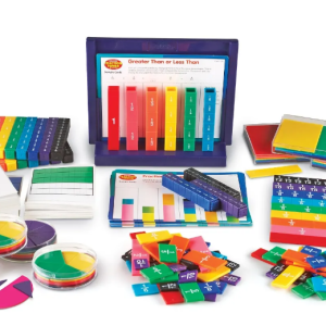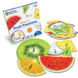 Met Voedsel Breuken ga je alles leren over breuken op een smakelijke manier! De set bevat verschillende soorten fruit, groenten, brood en cakes, steeds verdeeld in stukken om gemeenschappelijke breuken te vertegenwoordigen. Zo bevat de set pizza’s, een meloen, donuts, bananen en chocolade.